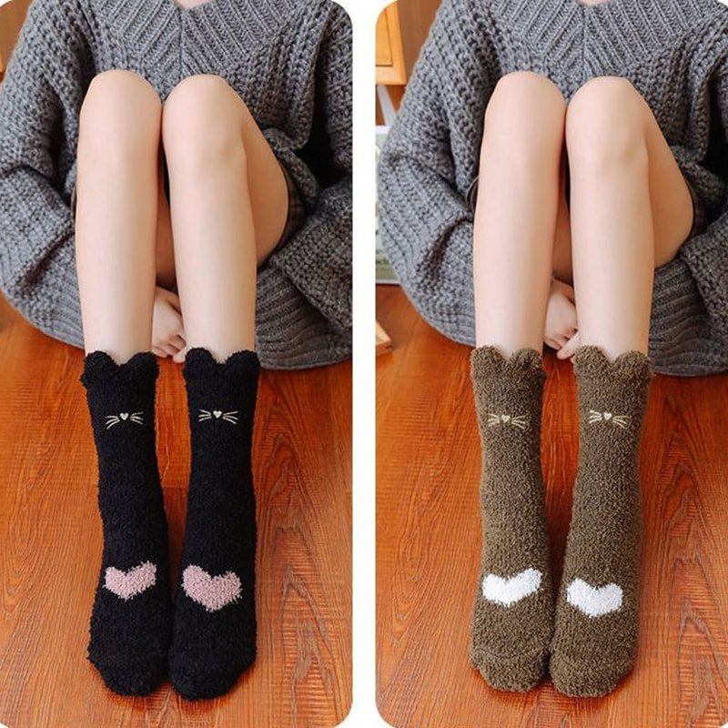 • Korallifleece-sukat, lasten karvaiset puolivälissä olevat sukat, syksy- ja talvikissan kynnet, söpöt, liukumisen vastainen, lämmin nukkuminen, lattia nukkuvat sukat