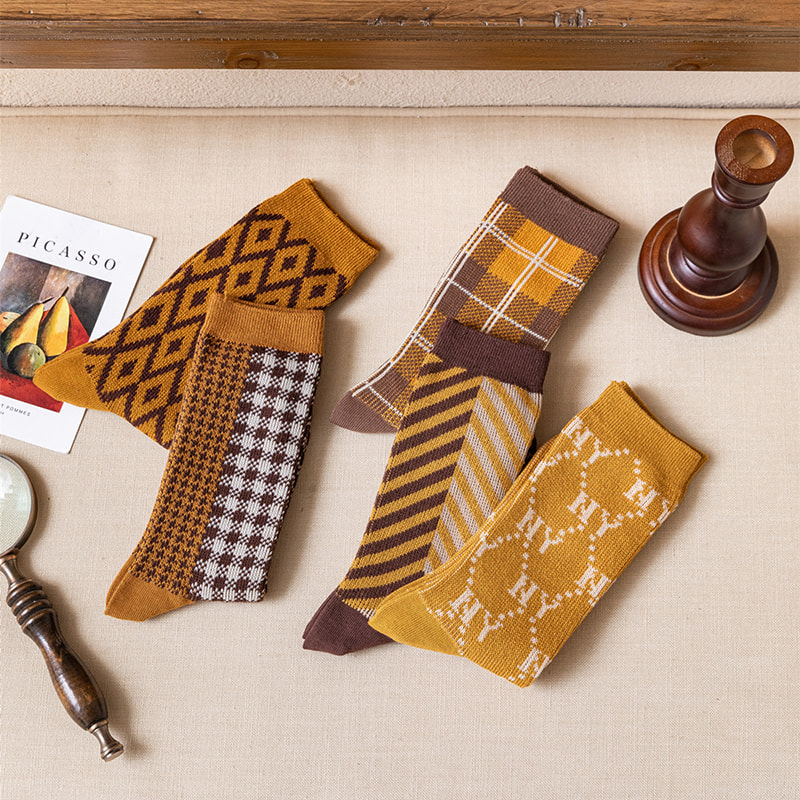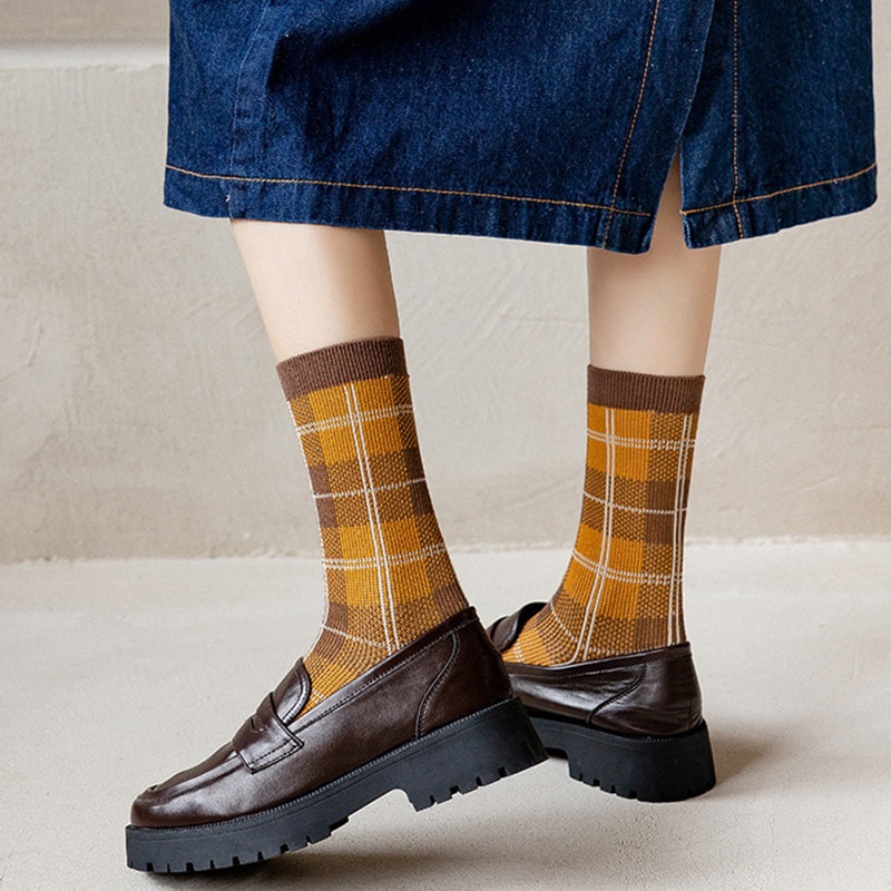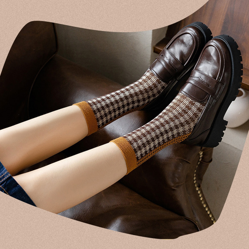 Kotiin / Tuote / Naisten sukat / Naisten keskiputken sukat / Ruudullinen leopardi tulostus kaksoisraite italialainen retro kaksoisneulapakkaiset sukat